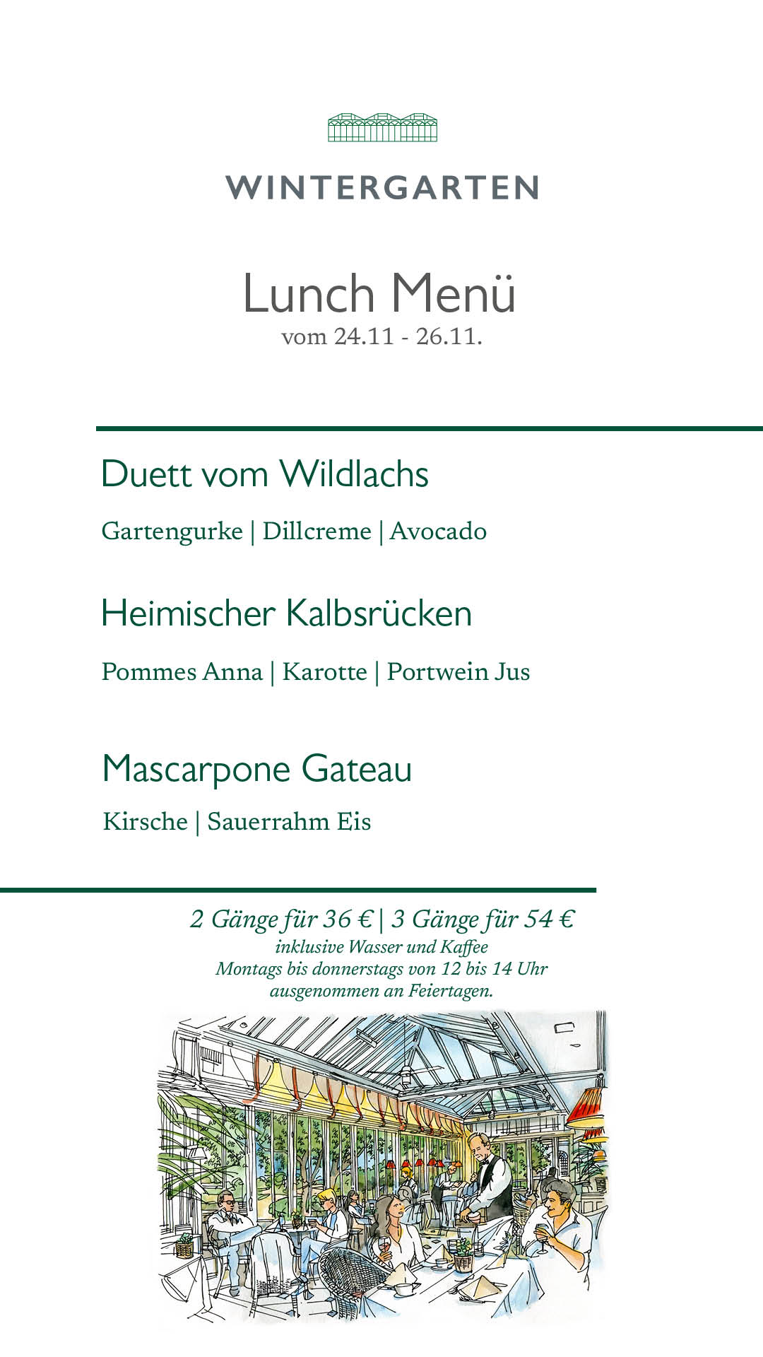 Wir freuen uns, Ihnen mehrere Menüs vorstellen zu dürfen, die täglich ab 18:00 Uhr erhältlich sind. Unser Chef-Sommelier empfiehlt Ihnen gerne ausgewählte Weine.